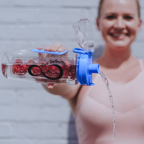 I mostly use it as just a water bottle without the infusion container. It's easy to carry with the attached loop, and the wide filling opening makes it easy to put ice cubes in it even if they are large or stuck together. It seals well and does not leak, even when full and on its side. My favorite feature is the spring-loaded top that lets you open and close it using only one hand which is great while driving.