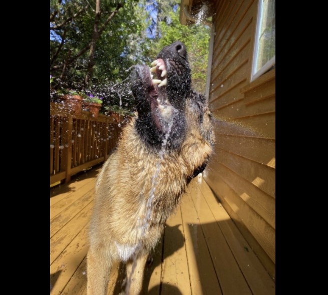 My buddy, Foster, loves water! Normally, in the summer, I will go outside with him and hold the hose up and let him chase the water. He loves it but I can't do that as often as I'd like so the product is definitely what he needed.