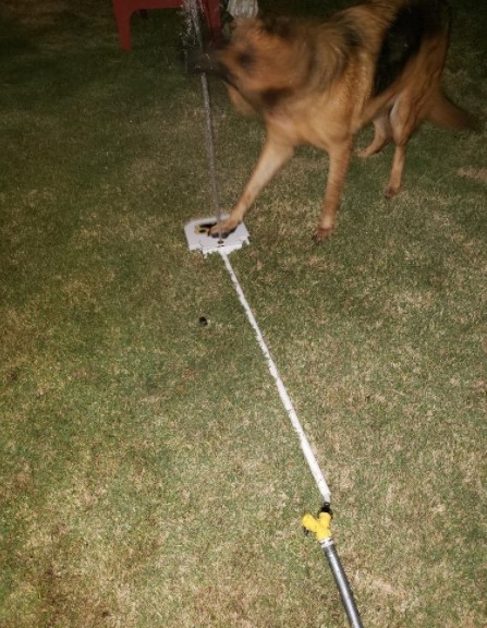 My dog, and kids, had so much fun with this! Easy to install! Kept them busy for a good 30 mins :) whenever we took it out, the dog would go crazy. The only downfall is he never figured out how to step on it, I wish the push button was off the device. He knew the water would spray out and he couldn’t avoid getting it in the face.