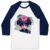 features raglan 3/4 sleeves and a modern fit that is perfect for a day