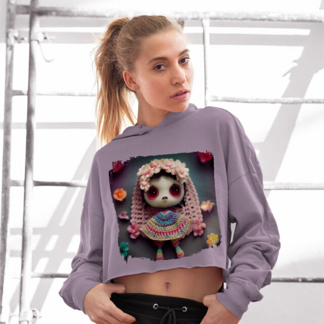 Beautiful Women’s Cropped Fleece Hoodie – Doll Cropped Hoodie for Women – Unique Hooded Sweatshirt