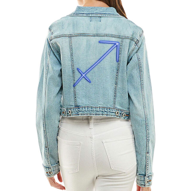 Cancer Sign Ladies’ Denim Jacket with Fleece Hoodie – Gifts for Girlfriend – Zodiac Sign Gifts