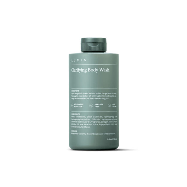 Clear up, moisture up — and feel (and look) better. The Lumin Clarifying Body Wash combines antifungal tea tree leaf oil with moisturizing aloe vera and ceramide for more resilient and healthier skin all over.
