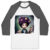 features raglan 3/4 sleeves and a modern fit that is perfect for a day