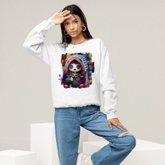 Cute Sweatshirt – Doll Crewneck Sweatshirt – Printed Sweatshirt