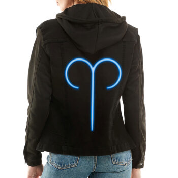 Aries Women’s Denim Jacket with Hoodie – Items With Zodiac Sign – Astrology Lovers Items