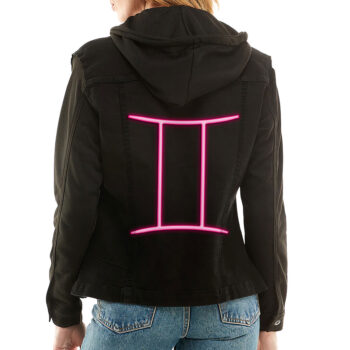 Gemini Women’s Denim Jacket with Hoodie – Zodiac Sign Items – Gift for Girls