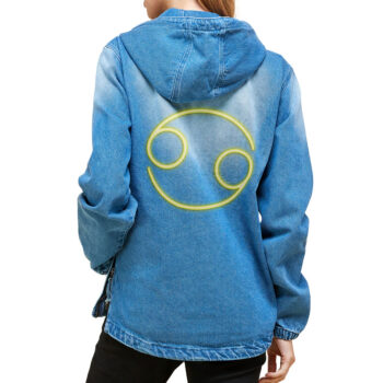 Cancer Sign Women’s Denim Jacket with Hoodie – Gifts for Girlfriend – Zodiac Sign Gifts
