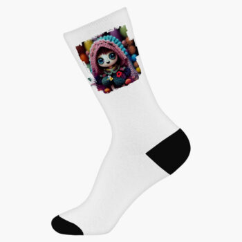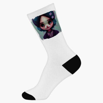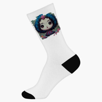 Cute Art Socks – Doll Novelty Socks – Graphic Crew Socks