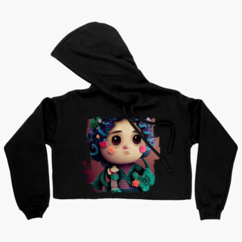 Cute Women’s Cropped Fleece Hoodie – Doll Cropped Hoodie for Women – Printed Hooded Sweatshirt