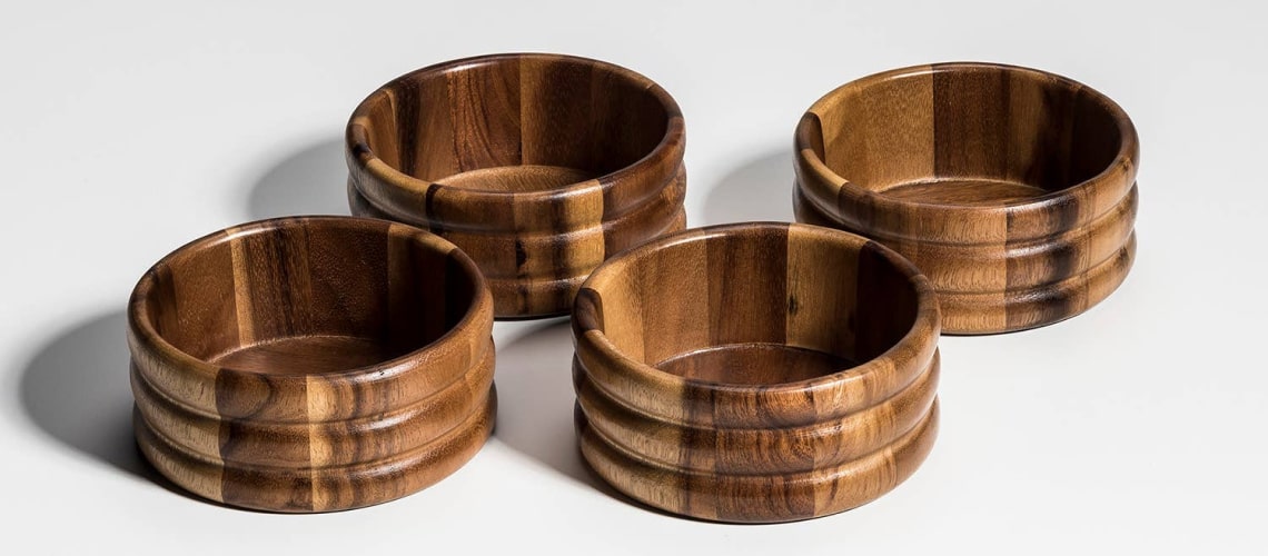 Beautiful bowls. I just bought another set to have 8. Wanted to see the first four before buying the second four. Made from one piece of wood.