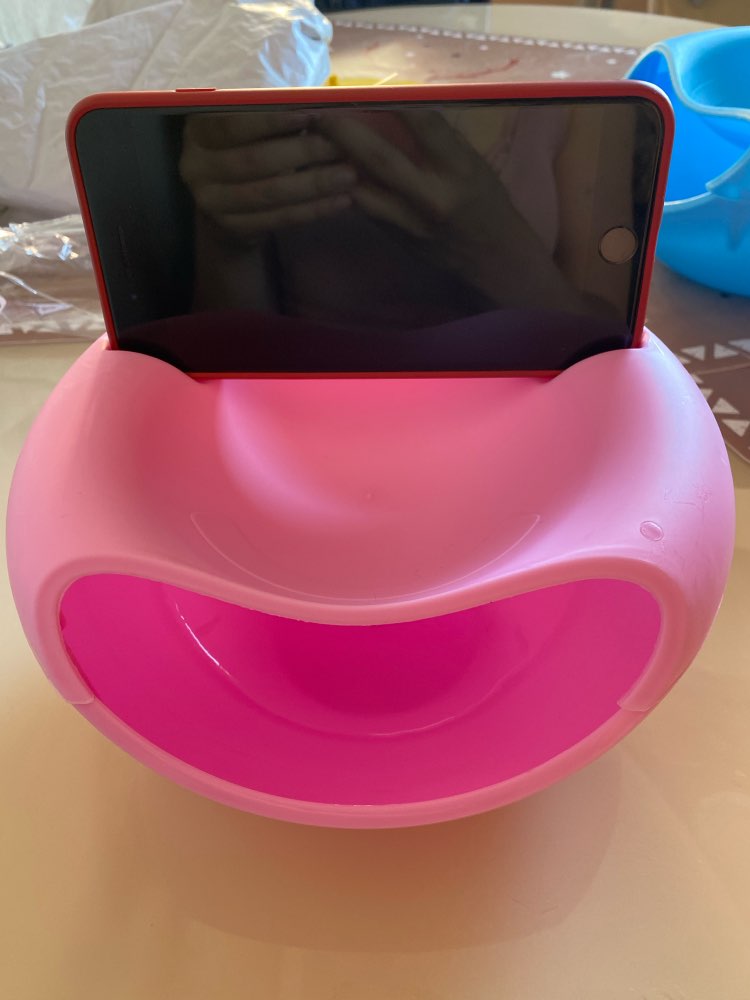 A convenient phone slot is built into this food-grade plastic bowl so you won’t have to pause or miss a second of your game, movie, or livestream while enjoying a snack. Our phone slot fits phones up to 6.7in/17cm in height (remember, the height becomes the width when you place the phone in landscape mode), making it great for just about any phone make. The bowl works great too if you are just watching something on your laptop or TV.