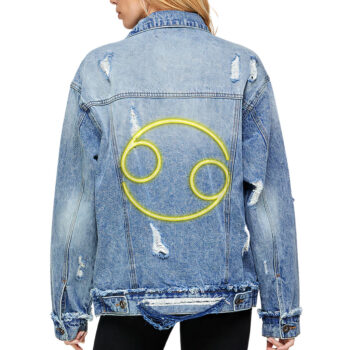 Cancer Sign Women’s Oversized Denim Jacket – Gifts for Girlfriend – Zodiac Sign Gifts