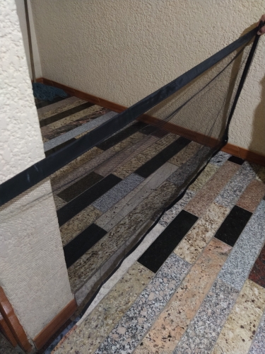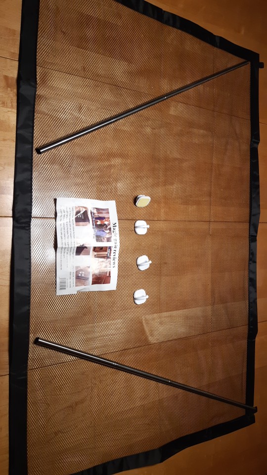 Well, here’s one way to keep your pooch in place. With no running around the house or walking into the room of construction. Our Portable Safety Net is the easiest and most convenient way to keep your dog from freely wandering around the house. It’s perfect for doorways, between walls, or even stairwells. And when it’s time to let your dog run free, simply move the net.
