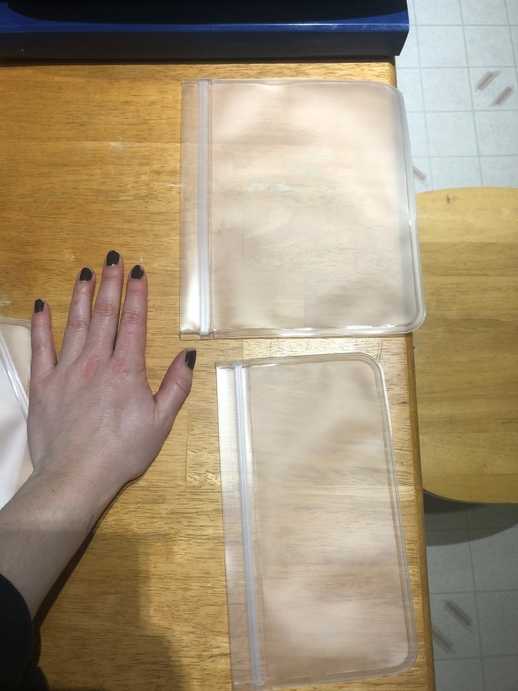 Gallon-Size (11″x11″); Sandwich-Size  (8.5″x7.75″);
