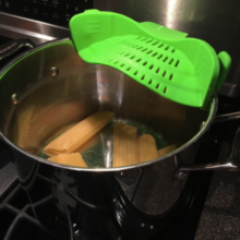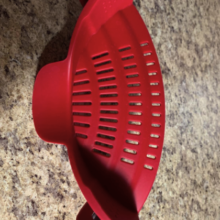 I wasn't really sure about this gadget, but the spouse was always draining some fat from meats in a frying pan so I thought I'd help him out with a fun thing. Turns out I use it more than him and for all my pastas, potatoes, etc. I pretty much gave up on my colanders and other strainers unless it is something very fine I must strain. The thing sticks on pretty much any pot or pan I have and will mostly hold the items in if it isn't too full, even my large pot for noodles. The reason I use it instead of everything else is how easy it is to use and then to clean. My sink doesn't need to be empty to accommodate setting a strainer in it, this tool basically rinses clean with hot water and does not leave pasta bits and potato starches all over like the steel colander or the foldable one I have made of pretty much the same material. Certainly some water is left behind if there is a large volume of stuff in the pot, but setting it back on the hot burner that is now cooling takes care of this perfectly. The compact size of it makes it easy to store and again, to clean! Bonus: it fits the Instant Pot too