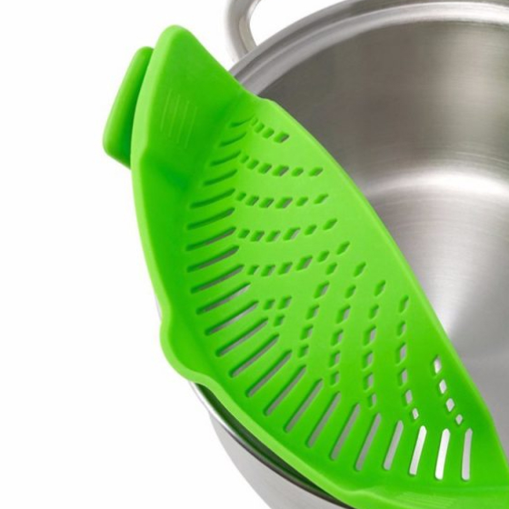 I cannot say enough good about this strainer. It fits all my pots from small to huge, even frying pans! I have strainers, colondars, every kind of lid converter...........This strainer is the best ever. When the pot is too heavy for me to hold to drain off the water, with this I can still hold on with both hands, and then when it is mostly drained, I set the pot in the sink to continue to drain (fidigity pastas) Washes up like a dream, or toss in the dishwasher. I do not know how I lived without this strainer. Now I can get rid of probably 20 items out of my kitchens!