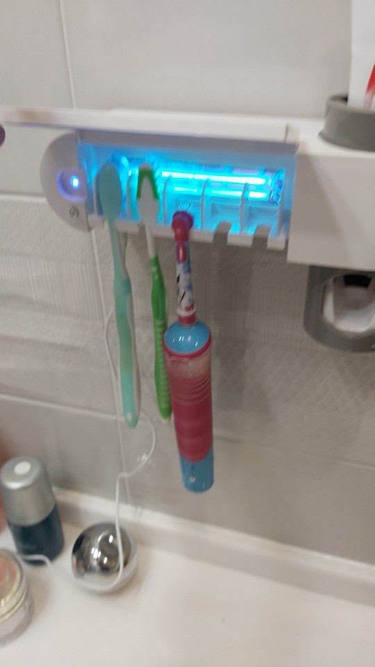 Very cool antibacterial holder. Beautiful design! Holds everyones toothbrush and sanitizes them effortlessly. Great product to save counter space & have a clean toothbrush. Very great product!